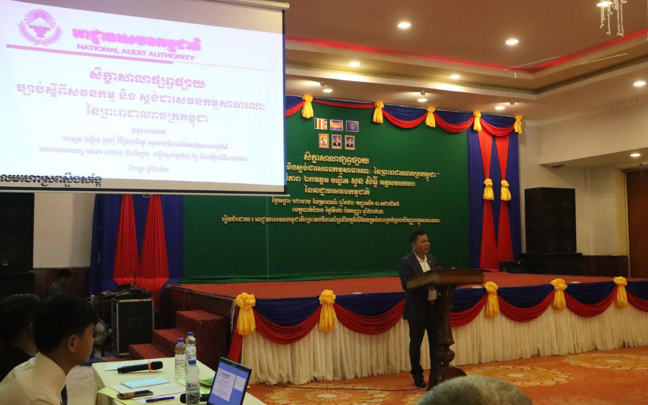 សិក្ខាសាលាផ្សព្វផ្សាយ ច្បាប់ស្តីពីសវនកម្ម និងស្តង់ដារសវនកម្មសាធារណៈនៃព្រះរាជាណាចក្រកម្ពុជា ក្រោមអធិបតីភាព លោកបណ្ឌិត សួន សិទ្ធី អគ្គសវនកររង តំណាងលោកស្រីបណ្ឌិត សោម គីមសួគ៌ អគ្គសវនករ នៃអាជ្ញាធសវនកម្មជាតិ