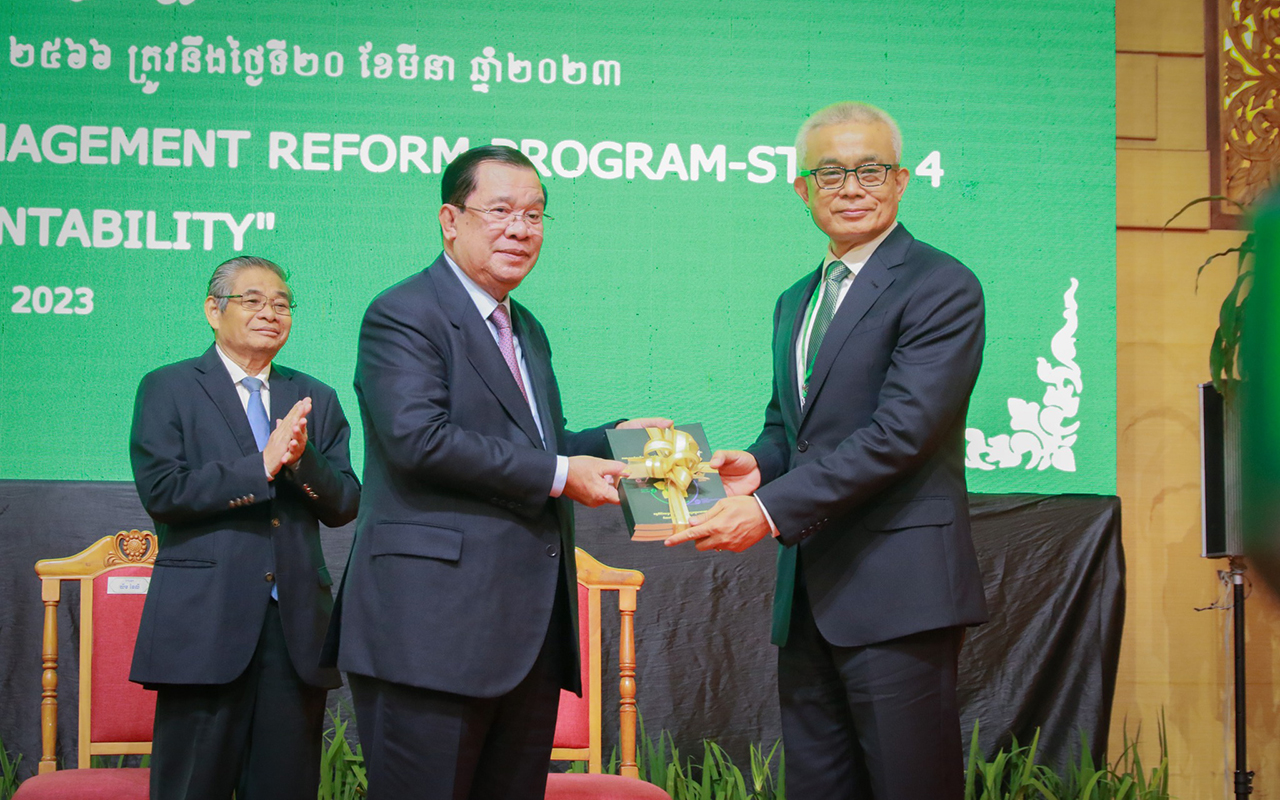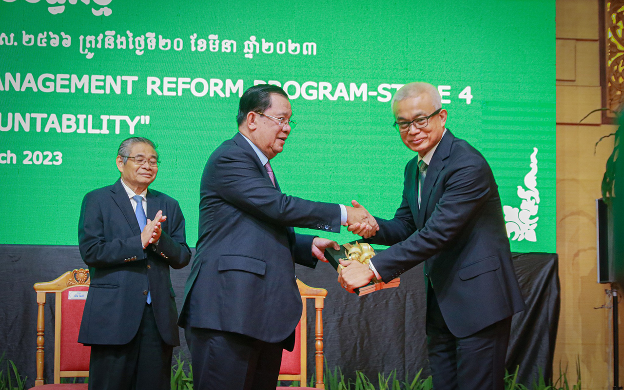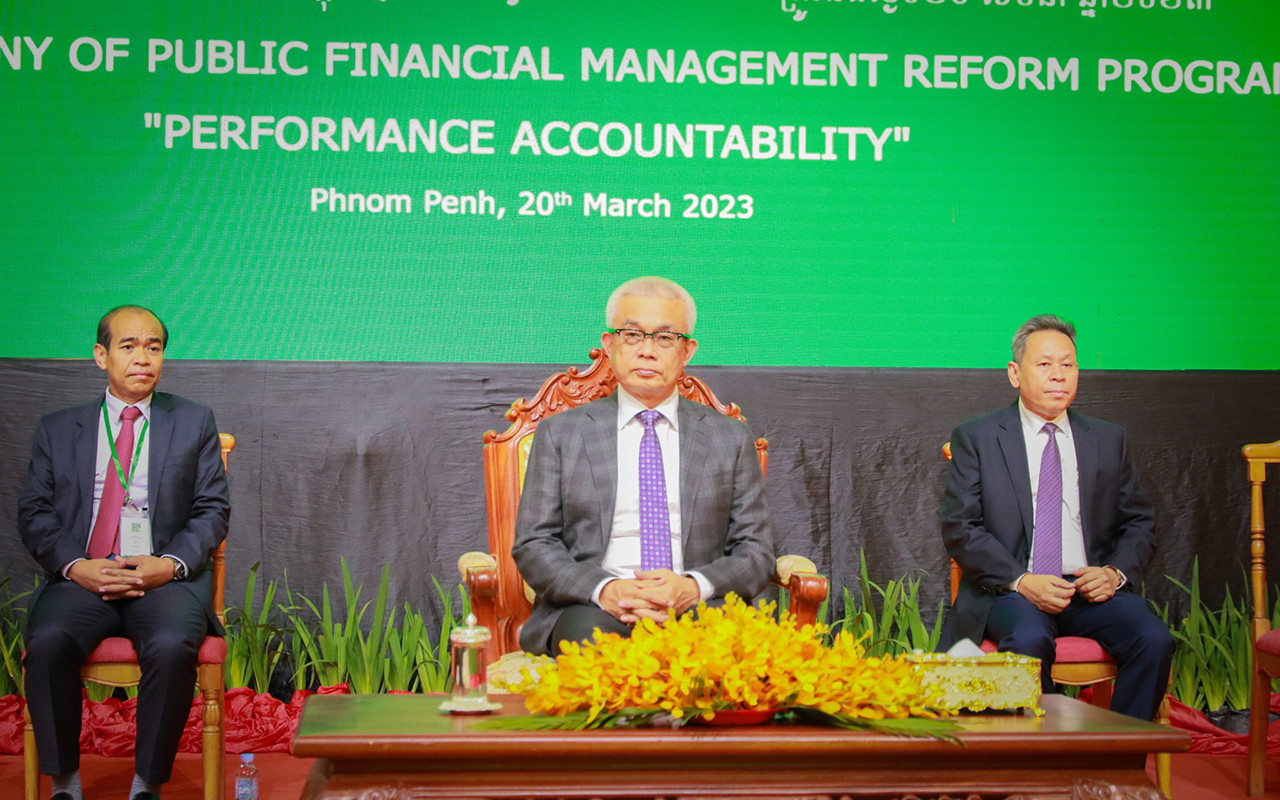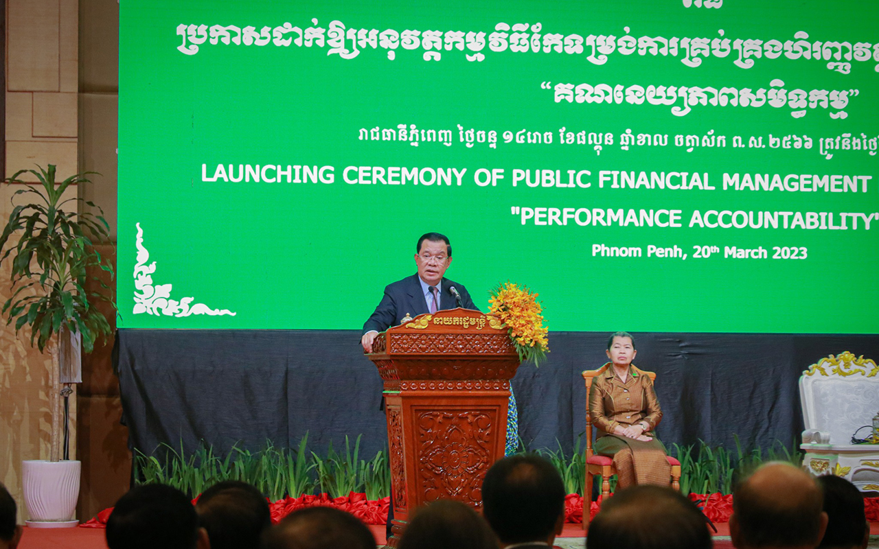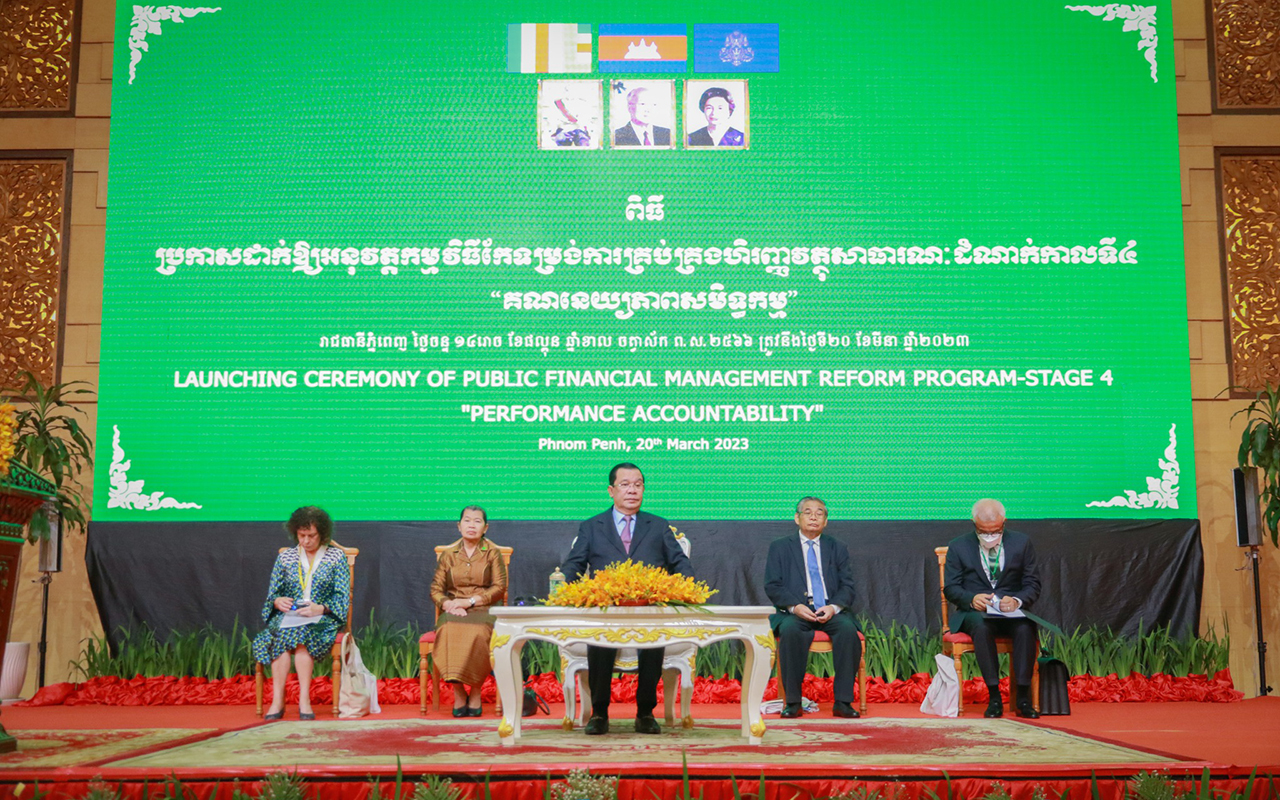 ពិធីប្រកាសដាក់ឱ្យអនុវត្តកម្មវិធី កែទម្រង់ការគ្រប់គ្រងហិរញ្ញវត្ថុសាធារណៈ ដំណាក់កាលទី ៤ “គណនេយ្យភាពសមិទ្ធកម្ម” នៅសណ្ឋាគារសុខាភ្នំពេញ ក្រោមការអញ្ជើញជាអធិបតីដ៏ខ្ពង់ខ្ពស់បំផុត របស់សម្ដេចអគ្គមហាសេនាបតីតេជោ ហ៊ុន សែន នាយករដ្ឋមន្រ្តី នៃព្រះរាជាណាចក្រកម្ពុជា