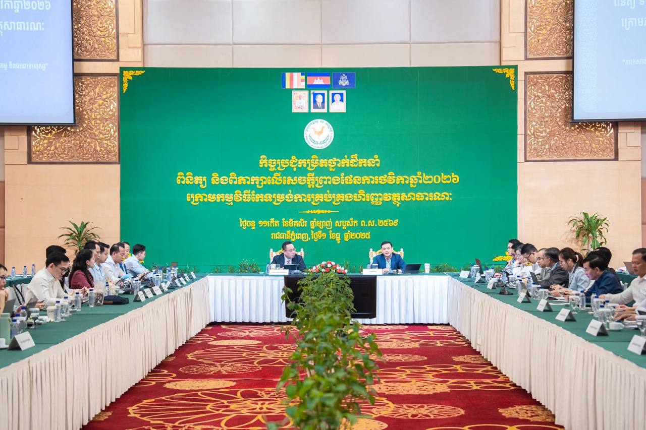កិច្ចប្រជុំកម្រិតថ្នាក់ដឹកនាំពិនិត្យ និងពិភាក្សាលើសេចក្ដីព្រាងផែនការថវិកាឆ្នាំ២០២៦ ក្រោមកម្មវិធីកែទម្រង់ការគ្រប់គ្រងហិរញ្ញវត្ថុសាធារណៈ ដើម្បីសម្អាតគម្រោងថវិកា និងបូកសរុបកញ្ចប់ថវិកាឆ្នាំ២០២៦ ដាក់ជូនថ្នាក់ដឹកនាំអនុម័ត